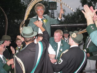 Die Adlertaufe wird am Donnerstag im Rahmen des Adleraufsetzens durchgeführt. Susanne Koch, die 2. Schriftführerin des Vereins wird 1. weiblicher König. Sie setzt sich gegen 14 männliche Mitbewerber durch.