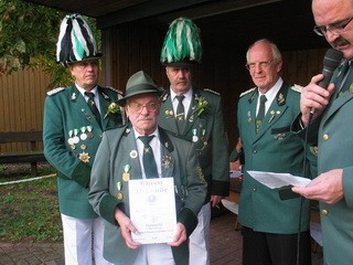 In der Herbstversammlung wurde beschlossen, den Programmablauf des Schützenfestes wieder in seiner ursprünglichen Form zu gestalten. Bereits während des Schützenfestes äußerten zahlreiche Besucher den Wunsch, den Programmablauf wieder zu ändern, dem wurde entsprochen. Die Regentschaft während des Schützenfestes sicherte sich Heinz Dieter Reckhemke, während des Kinderfestes tat es ihm sein Enkel Leon nach und wurde neuer Kinderkönig. Abschied nehmen mussten wir von unserem langjährigen Ehrenvorsitzenden Wilhelm Weltermann. Wilhelm Weltermann - sein Name steht für die Tradition des Schützenwesens und ist allen Vereinsmitgliedern ein Begriff. Seit er 1948 dem Verein beitrat, übernahm er viele Funktionen im Verein - als Fahnenoffizier, als Schriftführer, sowie als 2. Schriftführer. 1979 übernahm er dann das Amt des 1. Vorsitzenden, das er bis 1988 ausfüllte. Auf Grund seiner besonderen Verdienste wurde er in der Jahreshauptversammlung 1989 zum Ehrenvorsitzenden ernannt.