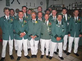 Es wurde beschlossen, dass der 1. und 2. Hauptmann in grünen Röcken marschiert, Freitags und bei Trauerfällen in schwarzer Hose, sonst in weißer Hose. Der Ehrenmajor Wilhelm Wegener "kann" einen grünen Rock tragen.
